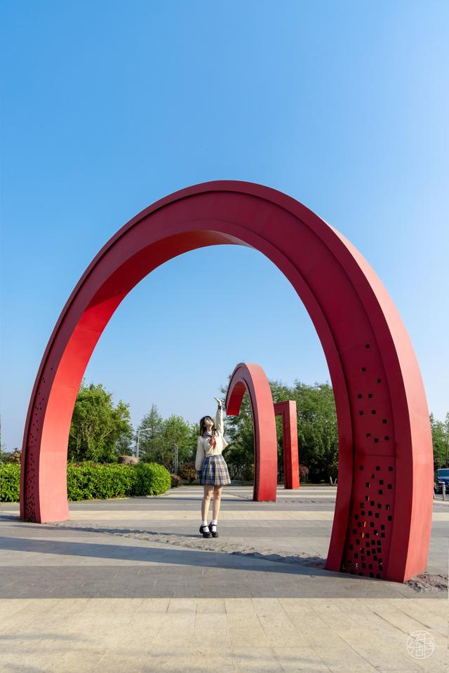 听涛景区经过翻新,上线了许多圆形、月牙形的线框雕塑,超好拍。
