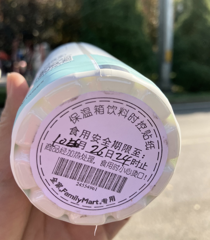 全家便利在饮料底部、便利蜂在饮料盖子顶部的贴纸,都可以撕掉,“如果这饮料过期了,店员重新更换标签很容易。”一名北京消费者告诉界面新闻,她从不购买暖柜的饮料,而且同样的价格,可以购买便利店内的美式咖啡了。
