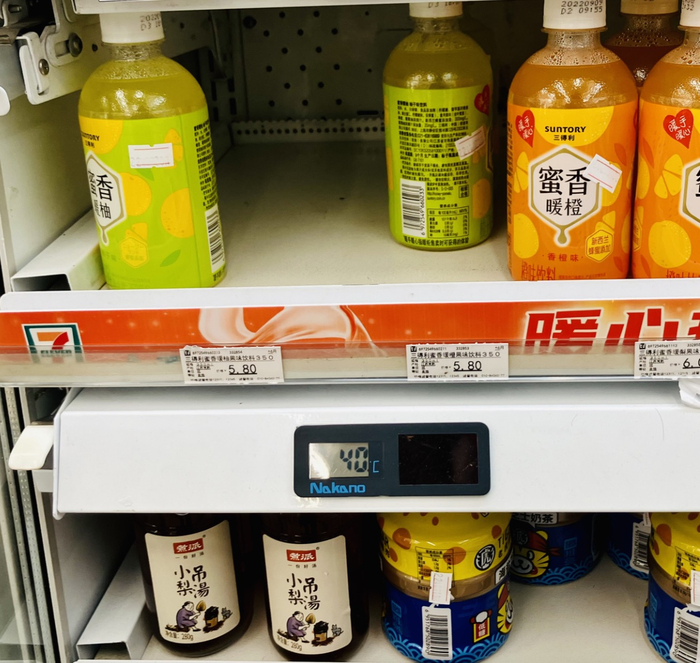在7-ELEVEn门店的暖柜上,暖柜将温度显示的屏幕直接展示给顾客。