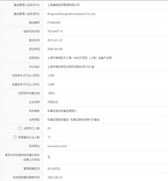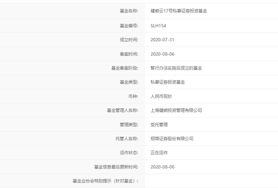 至于健顺云17号,中基协信息披露,这只产品的管理人为上海健顺投资管理有限公司(简称:健顺投资)。