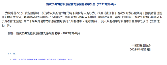 而《首次公开发行股票配售对象限制名单公告(2022年第6号)》,披露在丛麟科技(全称:上海丛麟环保科技股份有限公司)等科创板新股发行项目网下申购、缴款过程存在违规行为的情况,名单中却全部是机构账户。