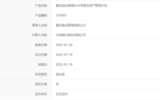 果不其然,这正是嘉实基金旗下的集合资管计划,于2022年1月成立并备案。