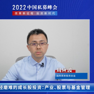 大家好,我是运舟资本的周应波。很高兴参加中国基金报主办的“2022中国私募峰会”,今天给大家做一个汇报,叫做“历经磨难的成长股投资”,这和我们所经历的2022年以来市场的调整、面临的各方面困境是相匹配的。