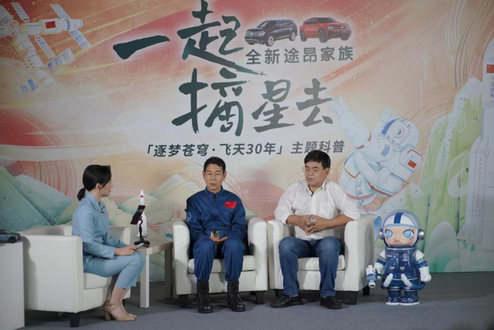 10月31日下午,在海南文昌航天科普中心“一起摘星去”文艺汇演直播现场,泡泡玛特代表潮玩行业致敬航天,参与“逐梦苍穹,飞天30年”主题科普,与访谈间航天员进行互动。
