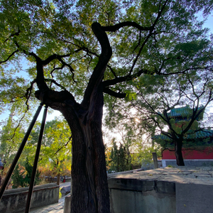 对症下药,古树焕发了青春。就拿编号为110107B00872的古侧柏来说,盘根错节的根系并没有扎在泥土里,而是从元君庙前的挡墙上生长出来,蔚为壮观。陈伟介绍,在古树保护小区建设中,他们对这株古树脱皮糟朽的伤口进行了人工打磨、杀菌消毒、固化防腐处理。挡墙进行了部分改移,绕开树干。在古树根部南侧的硬化地面上,还做了几个透气孔,灌注氨基酸营养液。此外,古侧柏周边从前杂树丛生,构树、竹子、臭椿等会与其争夺阳光和养分,这回也一并被清理了,种植了玉簪、二月兰等花灌木,明年春天,这些美丽的花儿将成为古树的新邻居。