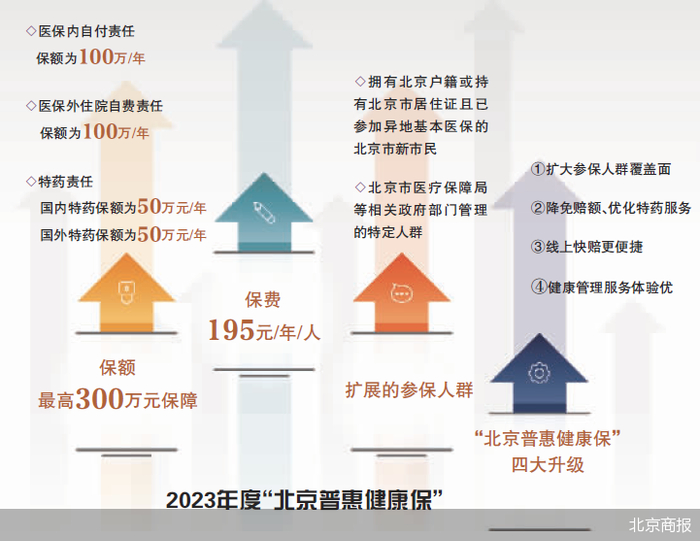 “虽然我们全家都有高端医疗保险,但我还是打算买‘北京普惠健康保’,因为它一年保费仅需195元,最高300万元保障额度,可以作为‘打底’的存在。”11月1日,在2023年度“北京普惠健康保”开放投保之际,一位家住北京市海淀区的市民对北京商报记者表示。