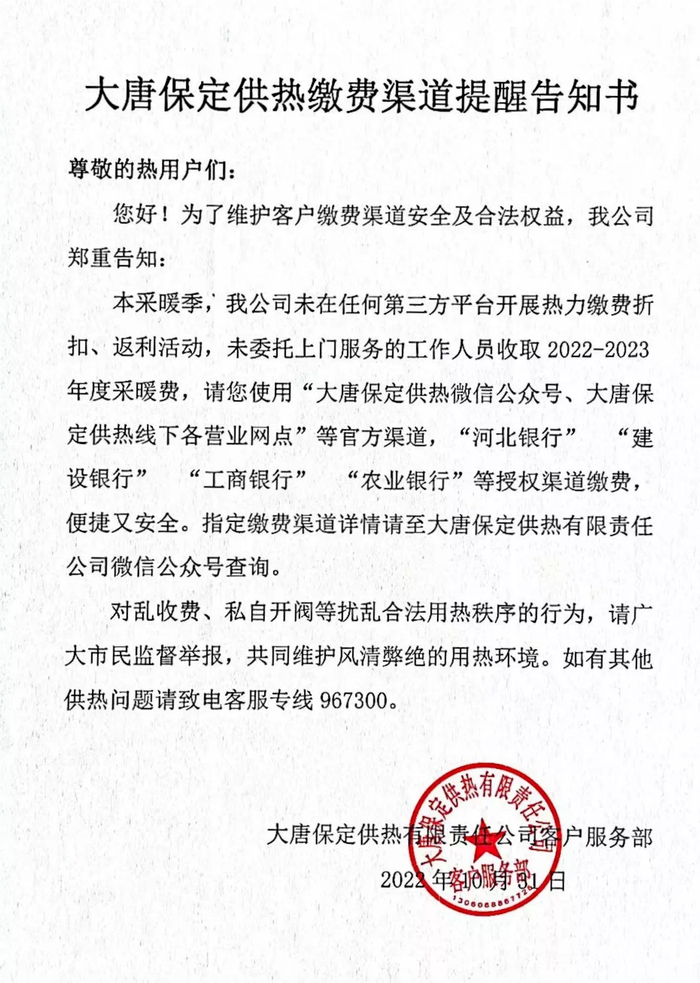 3、本通知解释权归建投河北热力有限公司秦皇岛分公司所有。