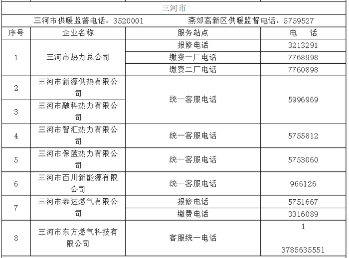全市现有集中供热企业29家,所辖热源厂站93座,换热站1429座,供热管网长度4012.3公里,总额定供热能力14675.55万平方米,预计今冬集中供热入网面积约13291.09万平方米。其中,市主城区集中供热入网面积约4723.33万平方米,三河、大厂、香河、固安、霸州、大城6个县(市)建成区集中供热入网面积约8567.76万平方米,永清县、文安县建成区全部采用分散式清洁取暖,各县(市、区)城区已实现集中供热和清洁能源供热全覆盖。