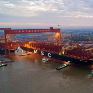 泰州是国家级船舶出口基地和全国最大的民营造船基地,2021年造船完工量达千万载重吨,占全球的十分之一。据“浦东发布”,沪东中华造船(集团)有限公司为地中海航运公司建造的24116标箱集装箱船8月在长兴造船基地出坞,成为当时全球建造的最大装箱量集装箱船。此次泰州出坞的两艘集装箱船通过优化上层建筑外形设计,将最大装箱量纪录又提升了230标箱。