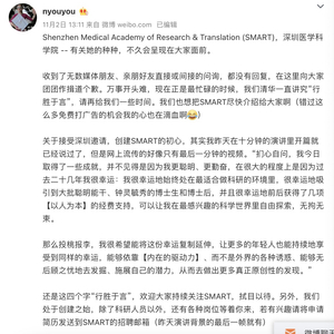 11月2日,知名科学家颜宁在微博公开回应回国加盟深圳医学科学院创办一事。颜宁表示:“行胜于言,欢迎持续关注深圳医学科学院(SMART)……关于接受深圳邀请,创建深圳医学科学院的初心,已在演讲开篇时表露——给年轻人创立最适合做科研的环境。”