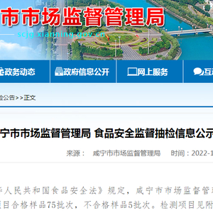 中国质量新闻网讯 近日,湖北省咸宁市市场监督管理局发布食品安全监督抽检信息公示(2022年第 10期)。
