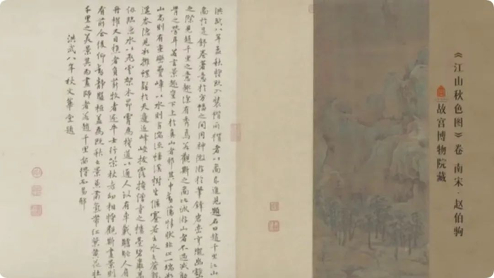 As representatives of the pinnacle of landscape painting during the Song Dynasty, "Autumn Colors on Mountains and Rivers" and "A Panorama of Rivers and Mountains" by painter Wang Ximeng have certain similarities. However, they also retain their unique characteristics.