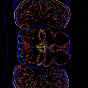 章鱼大脑的荧光图像显示不同类型神经元的位置。