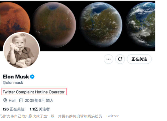 马斯克将自己的头像改成了童年照,并更名推特投诉热线接线员|Twitter