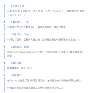 如果我们仔细看一下,过去一周‘硅谷钢铁侠’对于 Twitter‘动刀’的时间线,或许稍微能理解推特员工的心情: