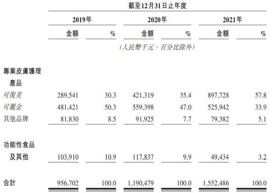 《招股书》显示,2009年,巨子生物推出了首款中高端多功能皮肤护理品牌——可丽金;2011年,又推出了可复美品牌,一款皮肤科级别专业皮肤护理品牌。