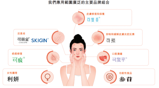 巨子生物以可丽金(敏感肌肤修复)、可复美(术后疤痕修复)、可愈(口腔健康)三个为主要品牌线为主,聚焦于皮肤医学、医疗器械、预防医学和营养医学三大方向。