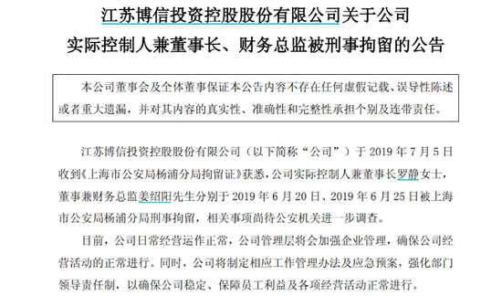 在出事前,罗静还控制着A股上市公司博信股份和一家新加坡主板上市公司。罗静被捕后,2019年8月博信股份董事长由罗静变更为汤永庐。