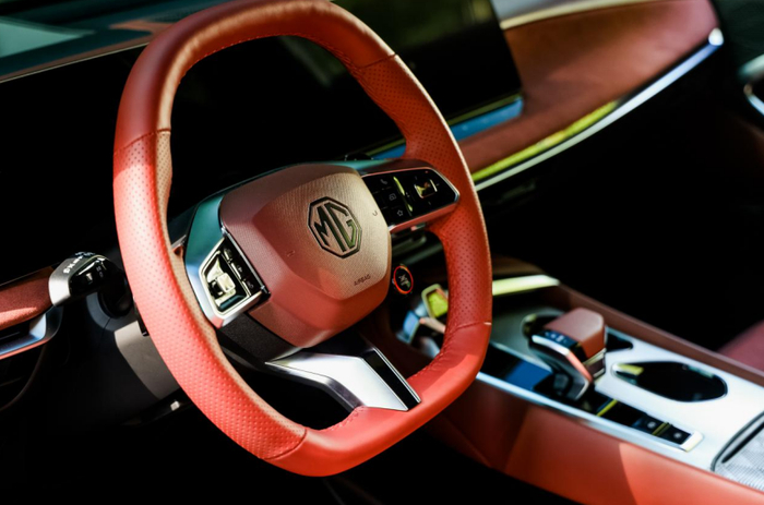 完整座舱氛围,演绎不凡格调。一整块质感细腻Dinamica®麂皮绒仪表台面板、33英寸一体式悬浮触摸屏、贯穿前舱的饰条与氛围灯,将优雅展露无遗。整体感之外,MG7还采用了非对称设计,无论是启动按钮、档把还是杯托,都精心采用非对称的造型,产生视觉上的不平衡感和动势,在整体豪华感之上增添灵动和格调。