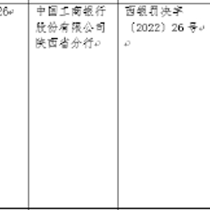 11月7日消息,中国人民银行西安分行行政处罚信息公示表显示,中国工商银行陕西省分行因违反支付结算、反洗钱、货币金银、国库、金融消费权益保护及征信管理规定,被监管警告并处525万元罚款。