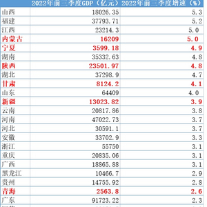 今年前三季度,全国GDP增长了3%,西北地区除了青海,其他省份都高于全国平均增速,而且内蒙古、宁夏、陕西、甘肃和新疆的GDP增速位居全国前十位,分别排名第3、第4、第5、第7和第9位。