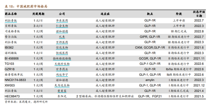 根据德邦证券统计,目前华东医药、仁会生物、诺和诺德、礼来、万邦医药、信达生物、恒瑞医药、勃林格殷格翰、天视珍生物、甘李药业、爱美客等多家企业在中国布局减肥药市场。