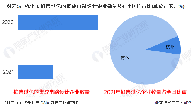 杭州是全浙江省集成电路产业核心区域,目前杭州已聚集起全省85%以上的设计企业,95%以上的集成电路设计收入都集中在杭州。此外,杭州集成电路设计销售过亿的企业数量占浙江省的比重约为75%。