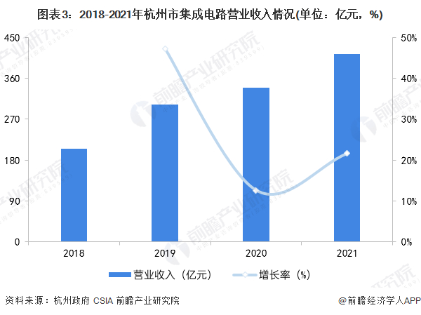 集成电路设计业是杭州的优势产业,2021年杭州市集成电路设计业持续保持高速增长的态势,全年销售额约为366.9亿元,较2020年增长72.5%,比全国同业增速高52.4个百分点,创造了新纪录。