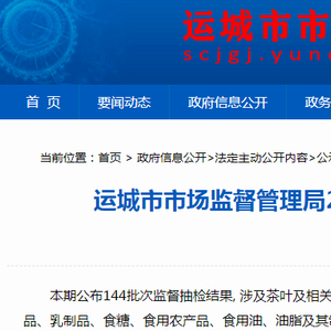 中国质量新闻网讯 近日,山西省运城市市场监督管理局公布19大类144批次食品监督抽检结果。其中抽检调味品30批次,合格样品30批次。