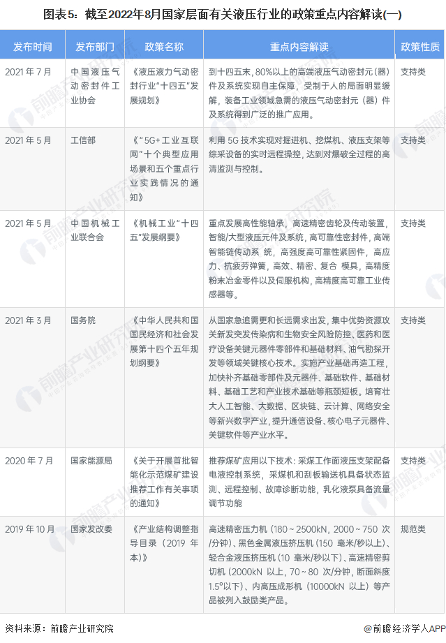 近年来,我国液压、气压动力机械及元件制造行业相关政策主要有《机械工业“十四五”发展纲要》、《液压液力气动密封行业“十四五”发展规划》,这些文件对液压、气压动力机械及元件制造行业做出了详尽的规划。