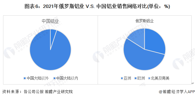 ——销售网络布局:俄罗斯铝业全球布局,中国铝业仅在中国布局