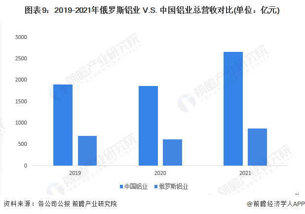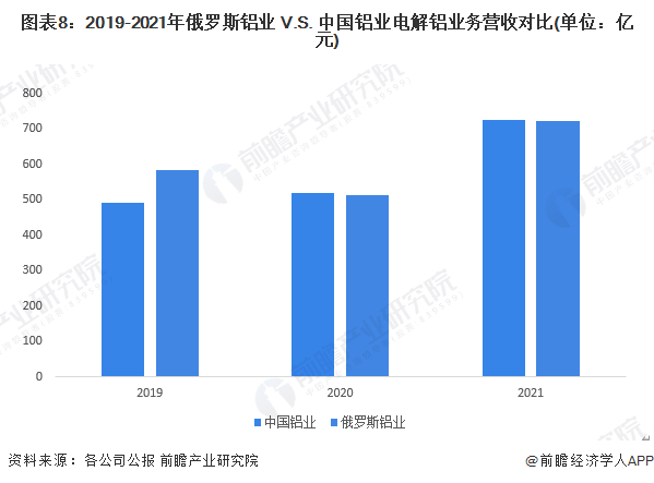 业绩对比:俄铝与中铝电解铝营收不相上下