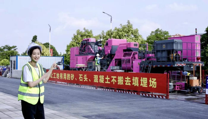 热火朝天的工地上,到处是坚硬、笔直的线条。然而,一个外表粉红色的庞然大物却创造了工地最萌反差。这就是《源深事务所》介绍的第一位“特工”——流动制砖车。在工地上,它被称作为变废为砖的钢铁游侠。