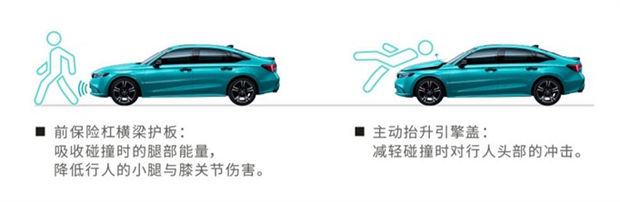 其次,关注包括车内驾乘者和车外行人等所有道路交通参与者的安全,型格(INTEGRA)全系标配了PUH行人碰撞防护系统。型格(INTEGRA)在车外行人安全指数测评的头型试验和腿型试验中均获得优秀(G)评价,凭借杰出的保险杠设计,腿型试验中获得满分成绩,最大限度地保护了车外行人的安全。