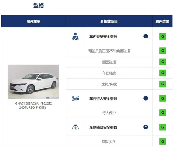 广本型格获中保研安全测评核心三项全优评价