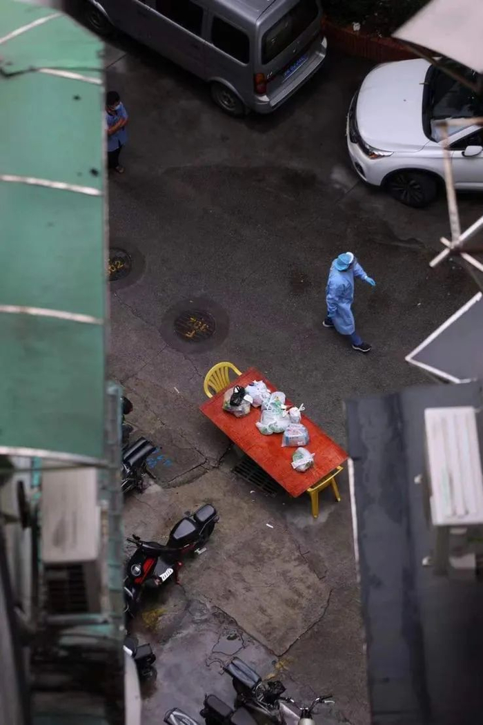 封控小区,居民物资统一放在固定取货点。摄影:何玉帅