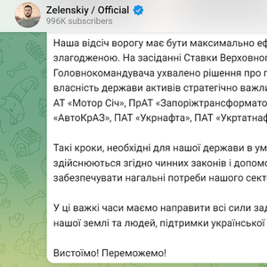 11月7日,乌克兰总统泽连斯基在社交媒体上宣布,将马达西奇等具有战略意义的企业收归国有。