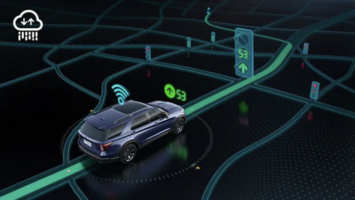 值得一提的是,全新福特探险者还搭载了业内首发量产的V2I车路协同系统,该系统基于现有商用4G蜂窝网络的通信模式,福特车路协同系统通过“车-路-云”的双向数据互联互通,将前方路口的红绿灯状态、道路基础设施等信息以图像和声音的形式,非常直观地显示在仪表盘上,同时还能够在车机的地图导航模式下,同步前方路口的红绿灯状态,有效提高路口通过效率,降低城市道路拥堵,让出行更高效。