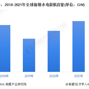2018-2021年,全球每年新增水电装机容量保持在20GW左右,2021年新增水电装机容量为26GW,同比上升5GW,为近几年新增规模最大的一年。