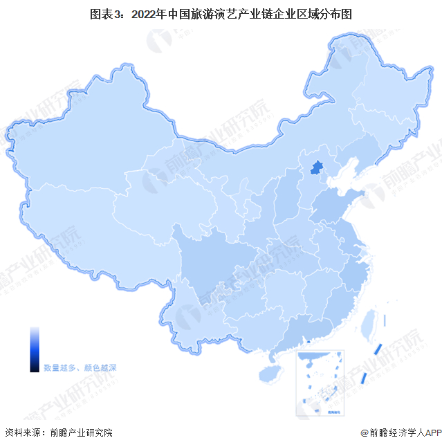 旅游演艺产业链区域热力地图:北京企业数量最集中