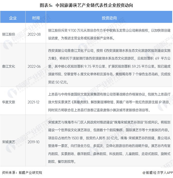 旅游演艺产业代表性企业最新投资动向