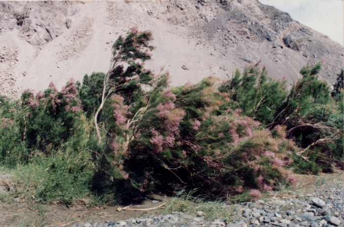 柽柳很“皮实”,喜生于河流冲积地、海滨、滩头、潮湿盐碱地和沙荒地,在很多其他植物活不了的地方,它长得很好。山东省林业科学研究院对柽柳种质资源的研究已逾三十年,副院长刘德玺介绍,柽柳是北方滨海重盐碱地湿地上唯一能生长的木本植物;东部沿海野生柽柳为灌木,外形“疏狂”,但生态价值极高。