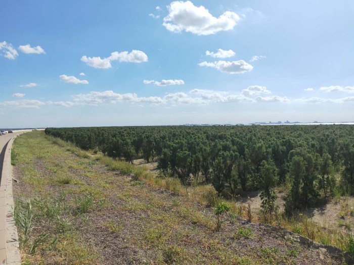 除了工程苗销售,乔化柽柳与其他植物组合种植,也已经获得了不错的收益。刘德玺特别提到了位于潍坊滨海经济技术开发区“南红北柳”生态工程示范林基地,其由山东柽霖生物科技股份有限公司营造,种植‘鲁柽1号’面积已达3000余亩,累计种植数量70万株。