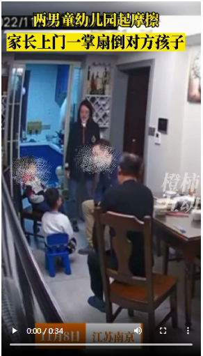都市快报讯 近日,一则“家长上门一掌扇倒幼儿园男童”视频在网上热传。