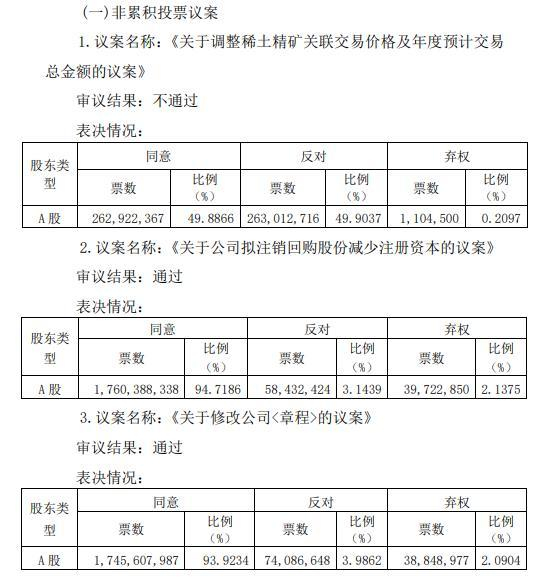 今日晚间,北方稀土发布2022第二次股东大会决议公告,《关于调整稀土精矿关联交易价格及年度预计交易总金额的议案》未予通过,票数差额不足10万票。一小时后,上交所就上述关联交易事项向北方稀土和包钢股份发出监管函。