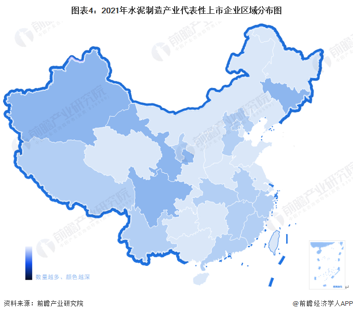 水泥制造产业产业链区域热力地图:江苏和山东省分布最集中