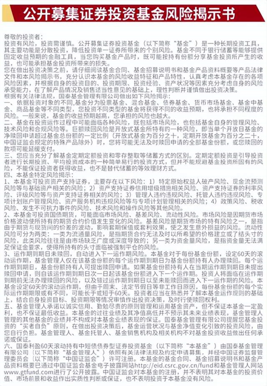 注:本基金设定60天的滚动运作期,但由于周末、法定节假日等非工作日原因,每份基金份额的每个实际运作期期限或有不同,可能长于或短于60天。投资者应当在熟悉并了解本基金运作规则的基础上,结合自身投资目标、投资期限等情况审慎作出投资决策,及时行使赎回权利。