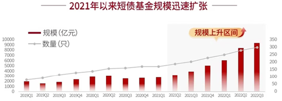 2021Q1以来,短债基金的规模和数量均呈明显的上升趋势。截至2022Q3,全市场合计296只短债基金,规模9272亿元。短债基金的高速扩张,背后原因包括: