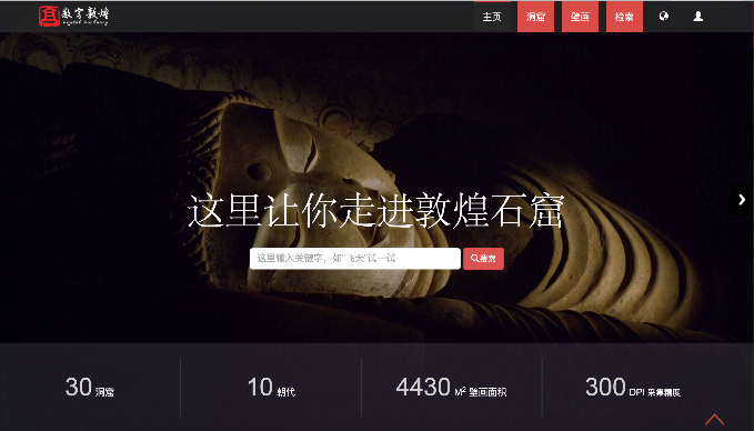 图为“数字敦煌”官网首页及“全景漫游”页面