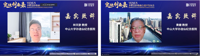 发布会伊始,深圳市第二人民医院梅红兵教授、中山大学孙逸仙纪念医院林天歆教授、中山大学孙逸仙纪念医院黄健教授、为本次卡本医疗VENUS新品发布会做开场致辞,对卡本医疗在医疗影像融合领域不断前行推进医疗影像技术科技革命的匠心,表达了由衷的肯定与赞赏,并期待卡本医疗开拓更多医疗影像领域划时代的新技术、新产品。